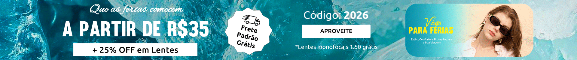 Use o código '2026' para 25% OFF em Lentes + Frete Grátis!