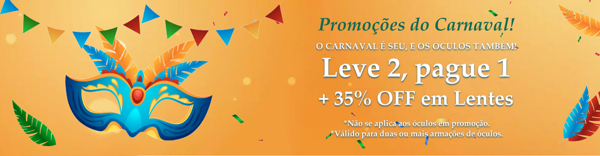 Compre Mais, Economize Mais - Até R$200 OFF Óculos | Código: Carnaval