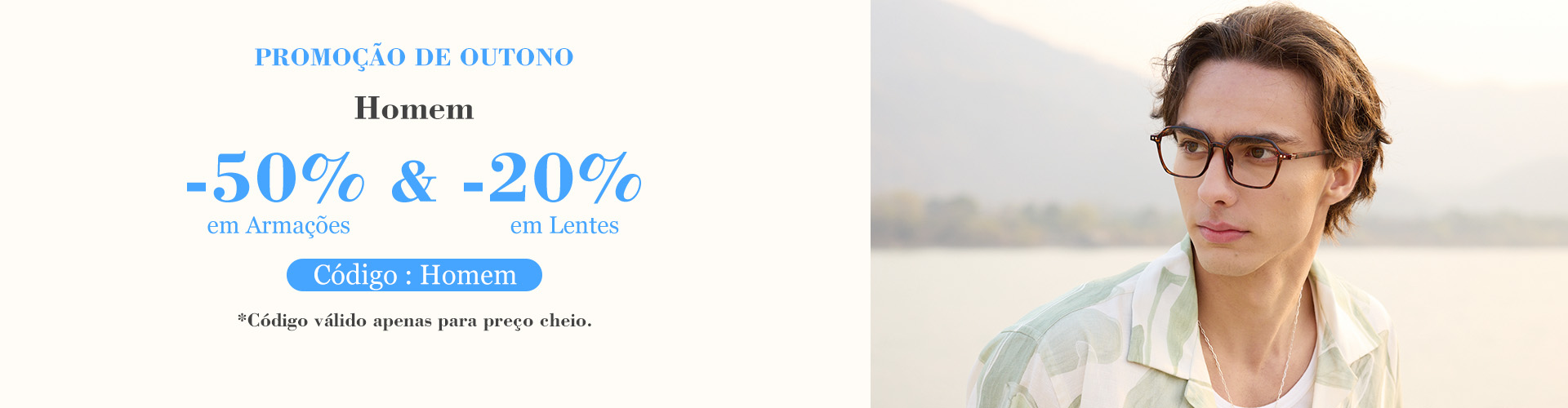Aproveite 50% de desconto em armações e 20% em todos os tipos de lentes.