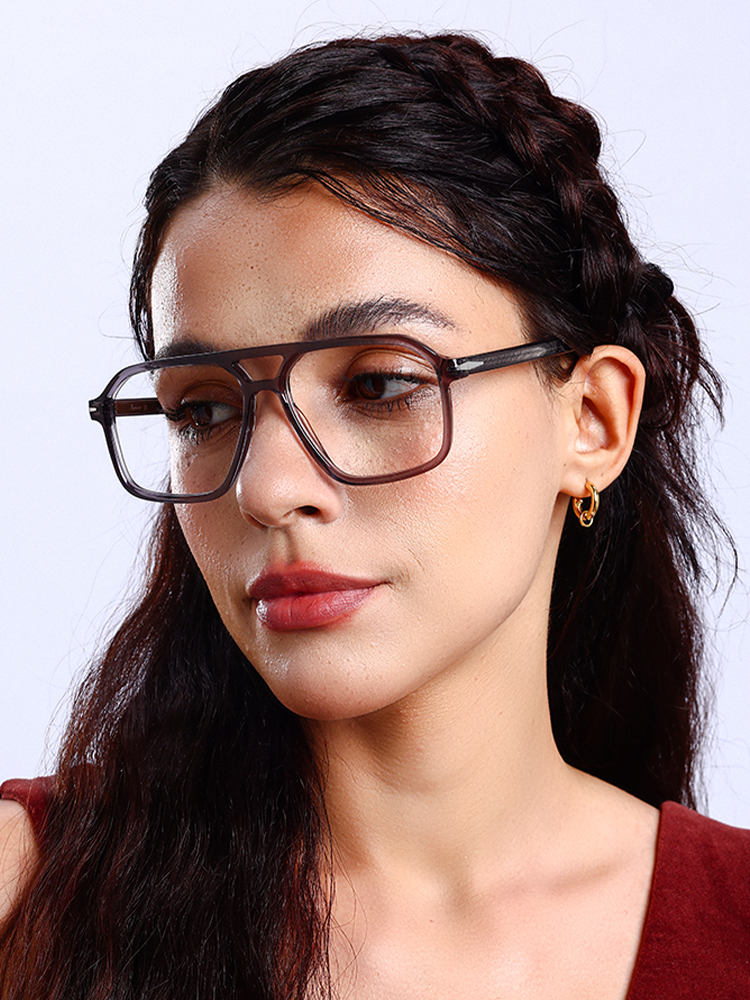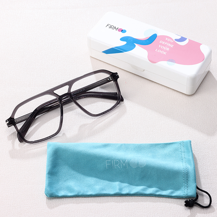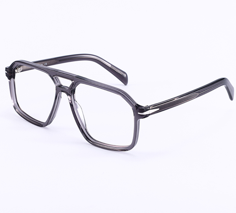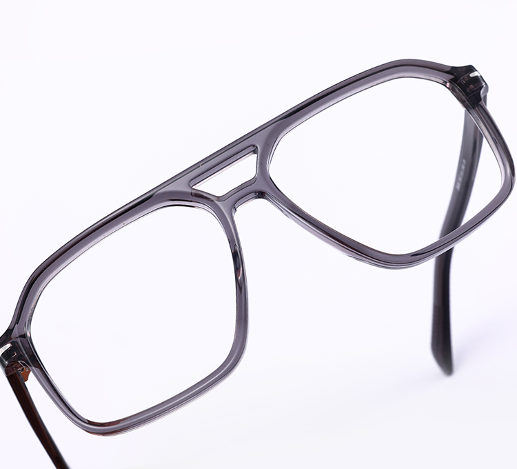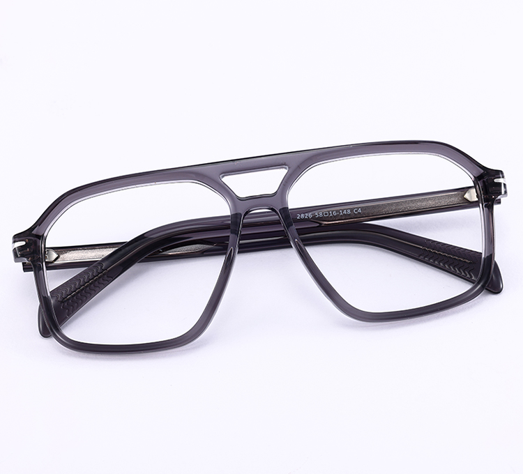Armação de acetato cinza oferece estilo versátil e discreto.