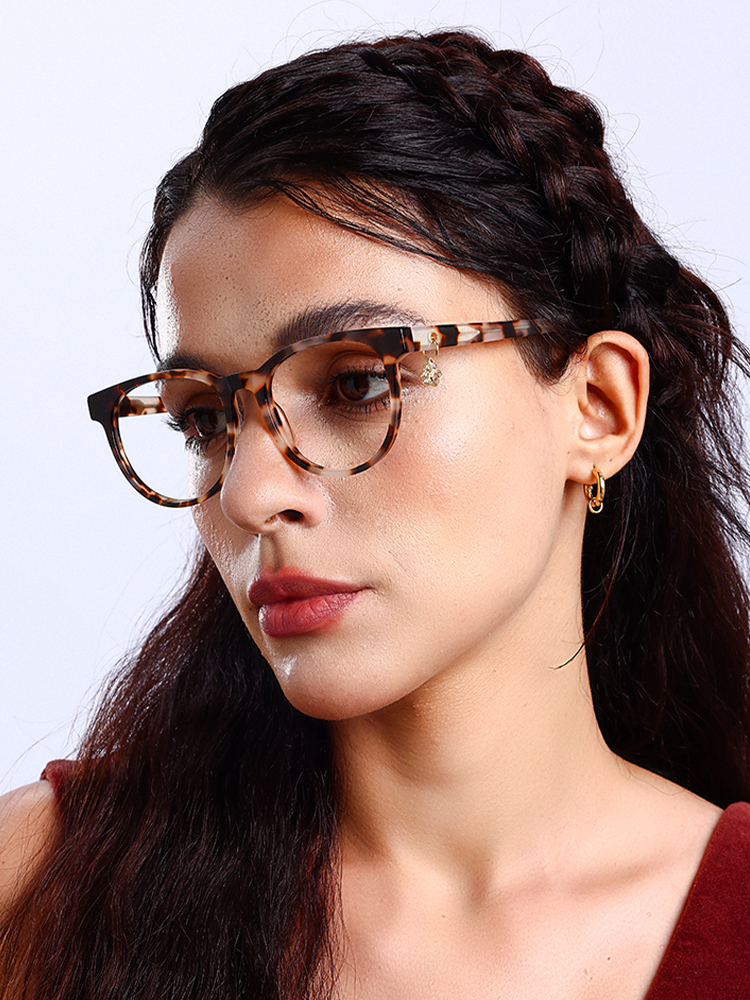 Pingente metálico em forma de garra adorna uma das hastes, trazendo charme.
