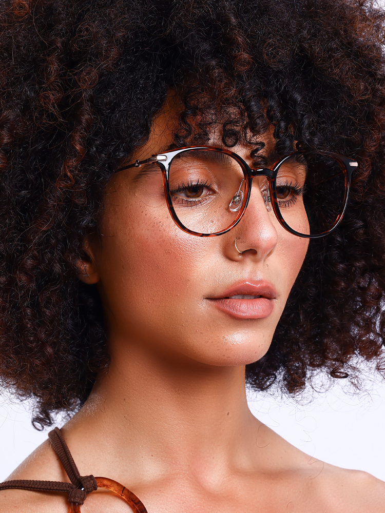 Armação retro versátil com padrão de chifre, que combina com qualquer look.