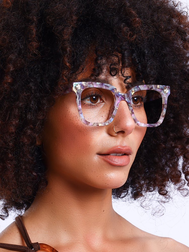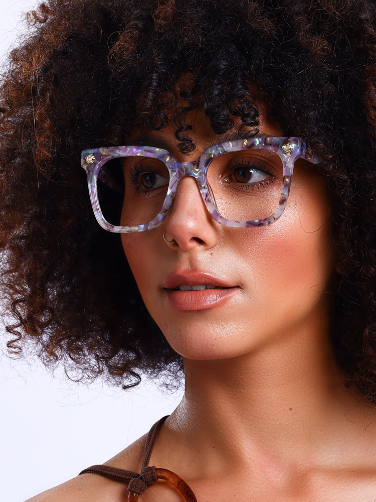 Detalhes de flores metálicas nas laterais adicionam delicadeza.