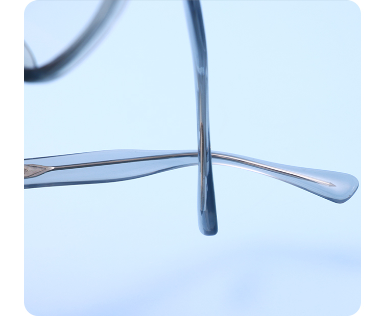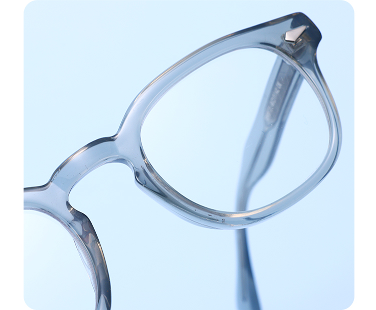 Acetato polido com detalhes em metal brilhante para um toque divertido.