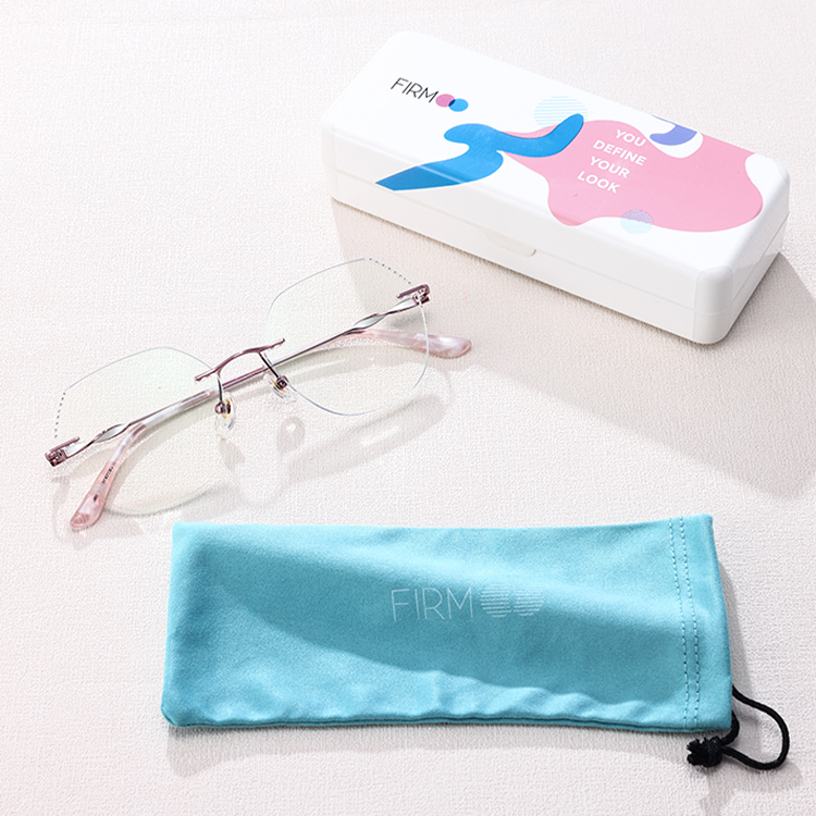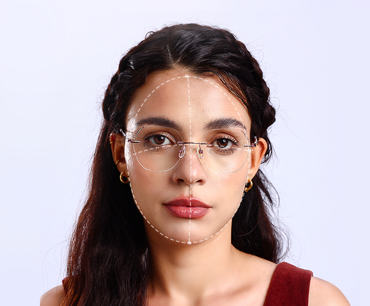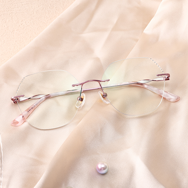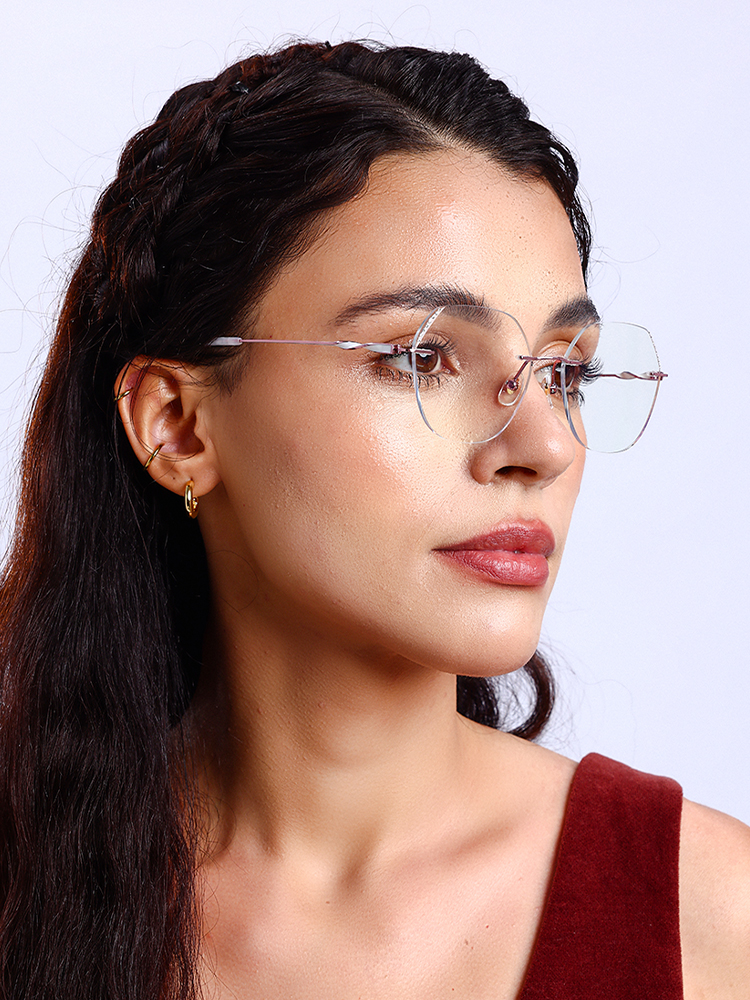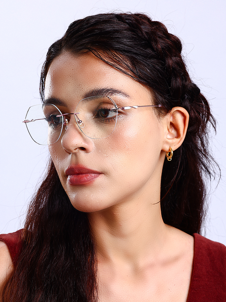 Lentes geométricas sem aro decoradas com strass brilhantes.