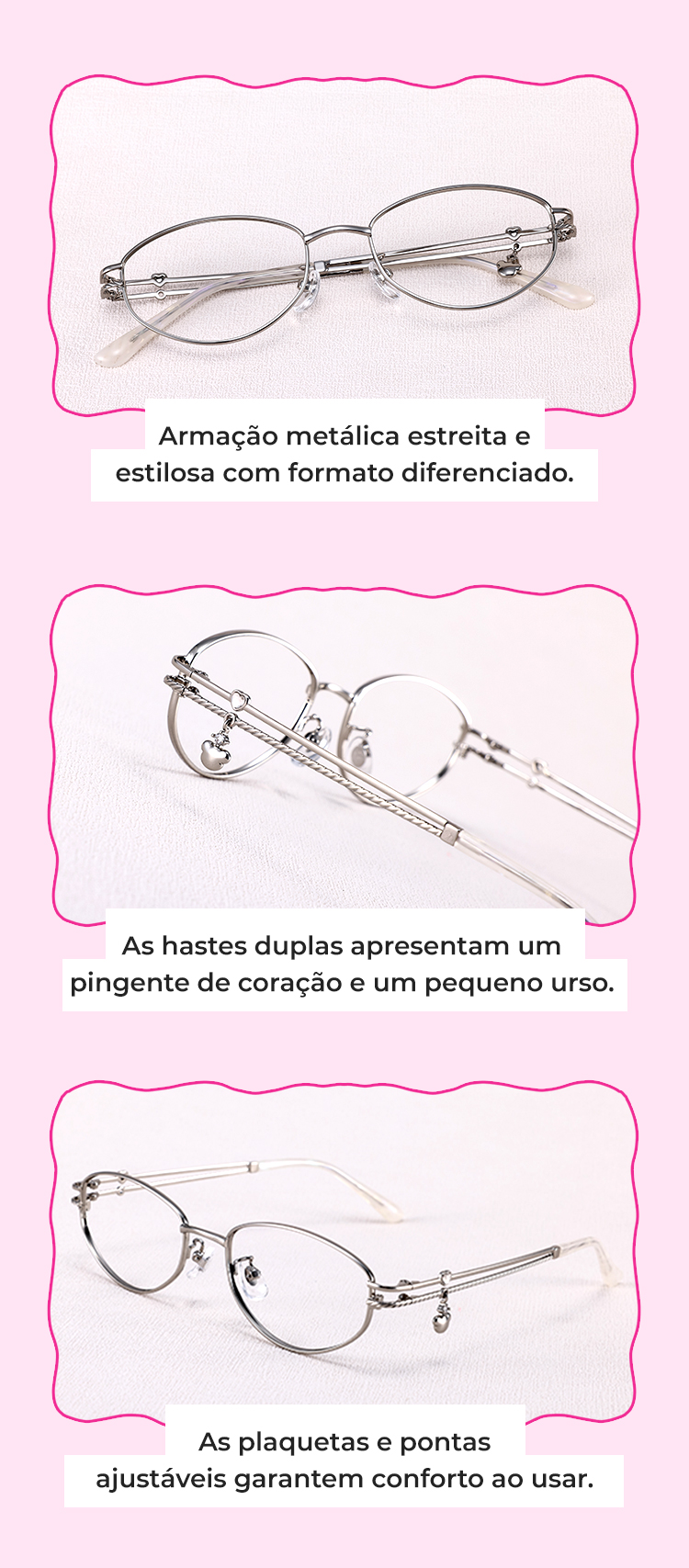 A armação de metal contém níquel devido ao processo de produção. Clientes com histórico de alergia ao níquel devem ter cautela ao comprar.