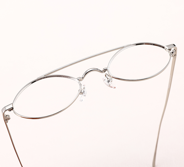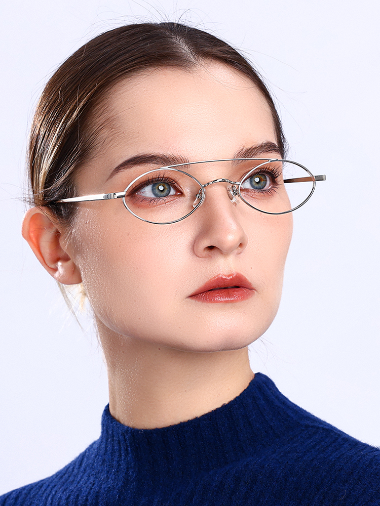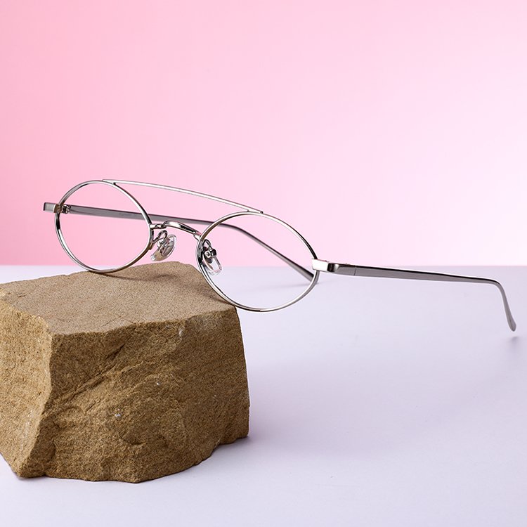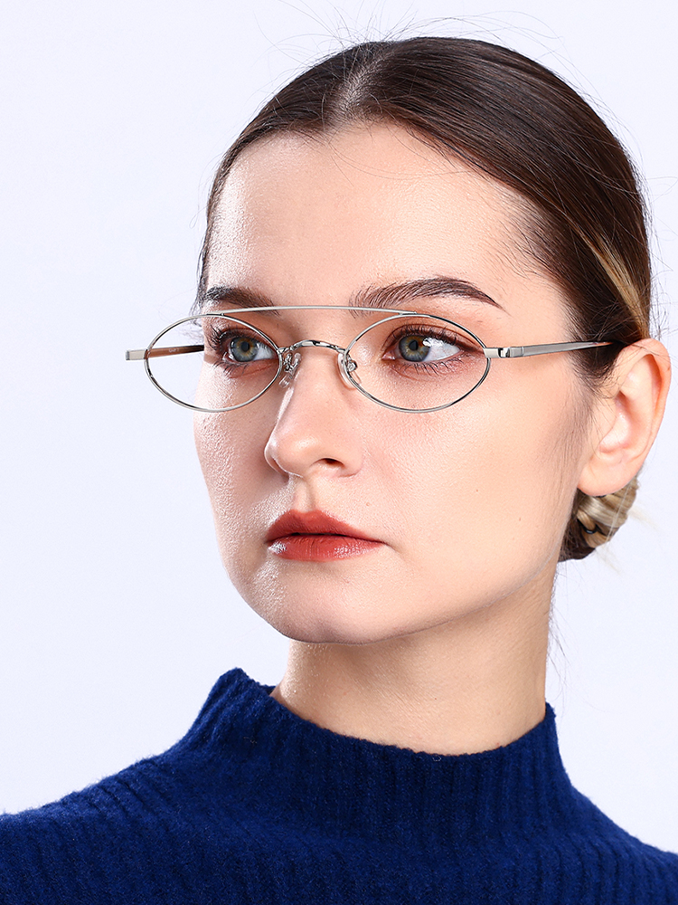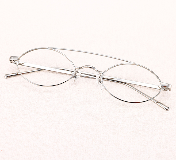 Armação metálica prateada estreita para um visual limpo e elegante.