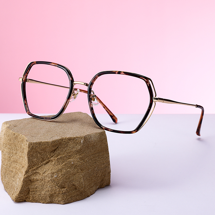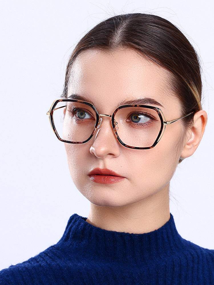 Armação geométrica com laterais de linhas duplas para um toque moderno.