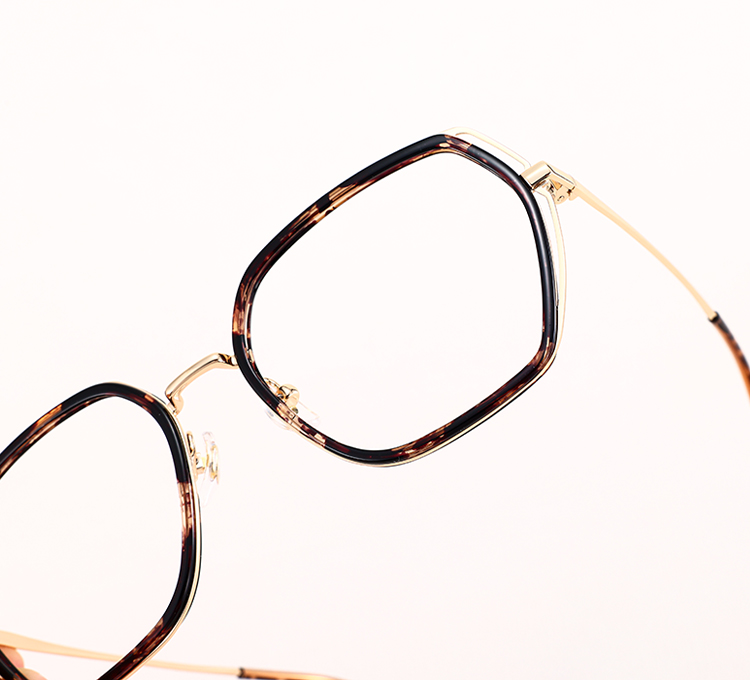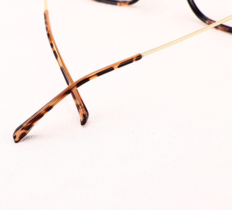 Hastes metálicas finas com pontas em tartaruga para um detalhe elegante.