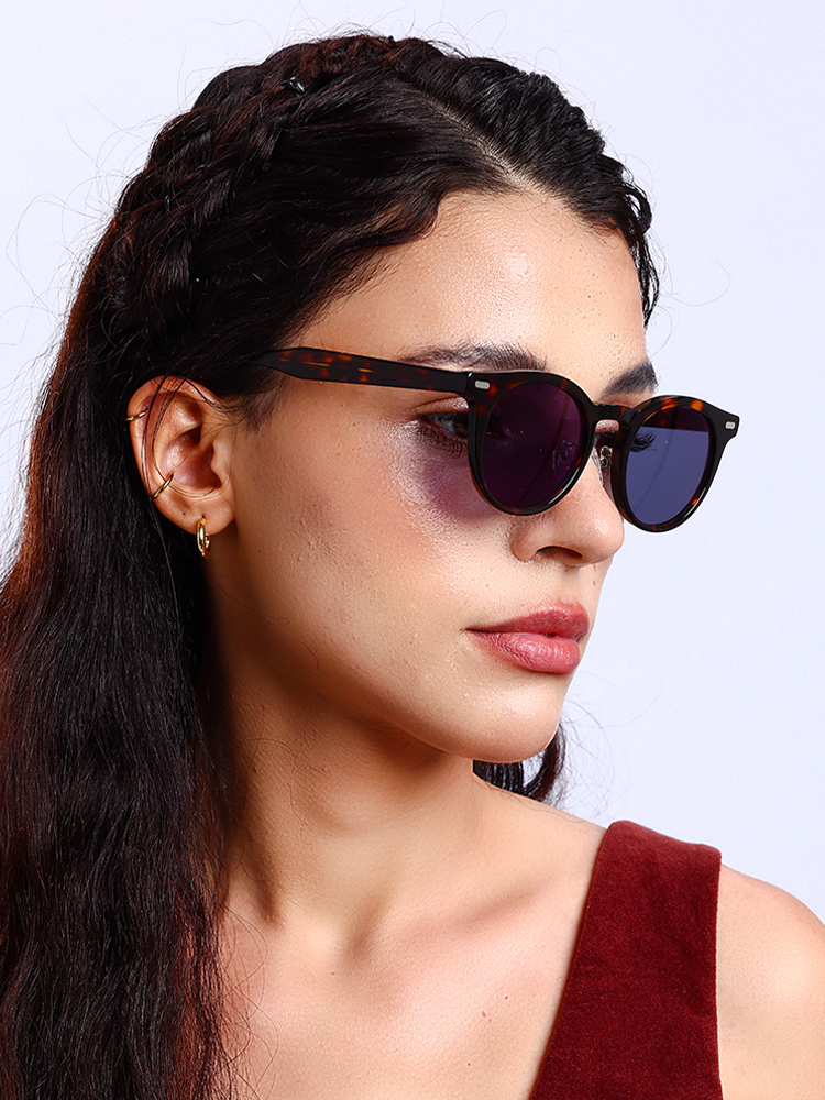 Óculos de sol em padrão tartaruga oferecem charme retrô clássico.