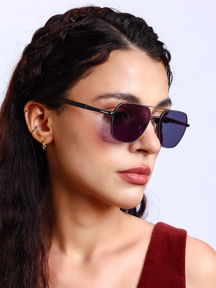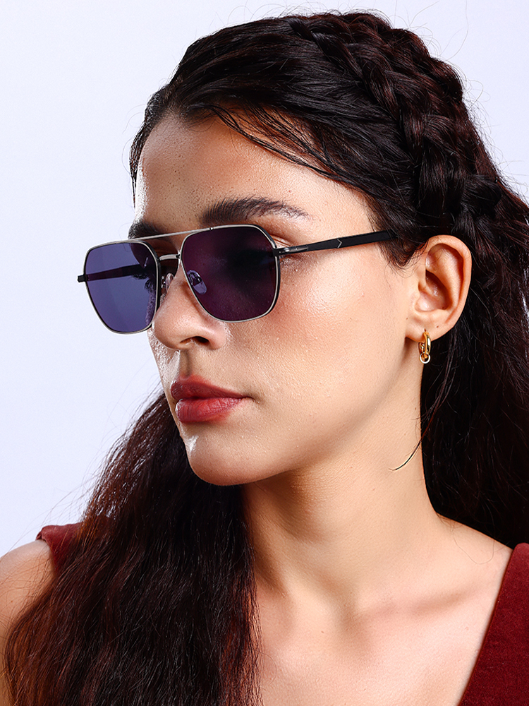 Óculos de sol aviador metálicos em tons frios para estilo elegante.